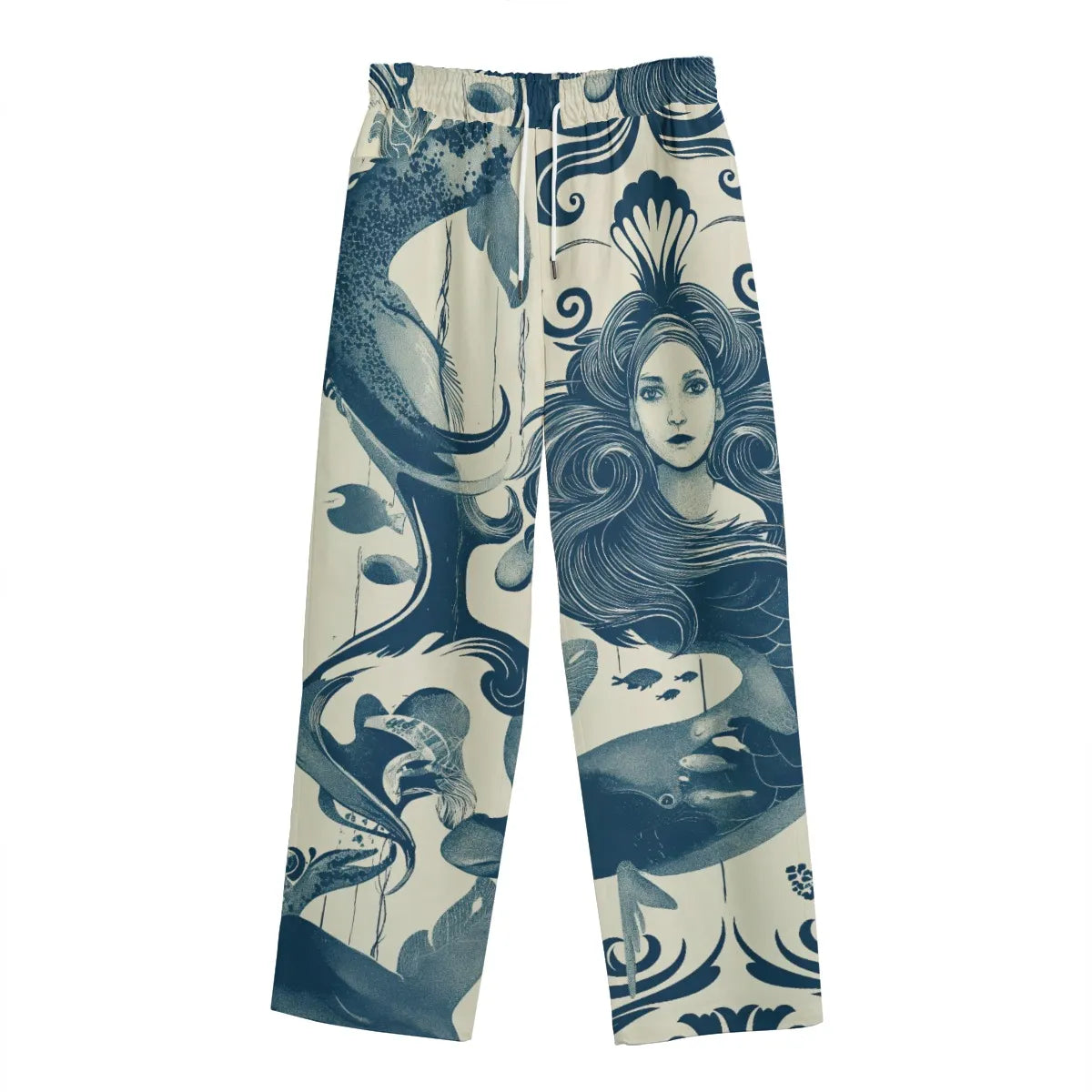 The Yacht Rob Siren Tide Pants move like water. Loose, flowing, and cut for rhythm, they carry the full Siren Tide rallyprint across every step. A mythic goddess, compass roses, and ocean life drift through deep-sea navy, ocean teal, foam-white, and horizon fades — a print alive with motion, a story that walks with you.