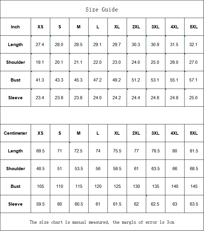 | Centimeter | XS | S | M | L | XL | 2XL | 3XL | 4XL | 5XL |