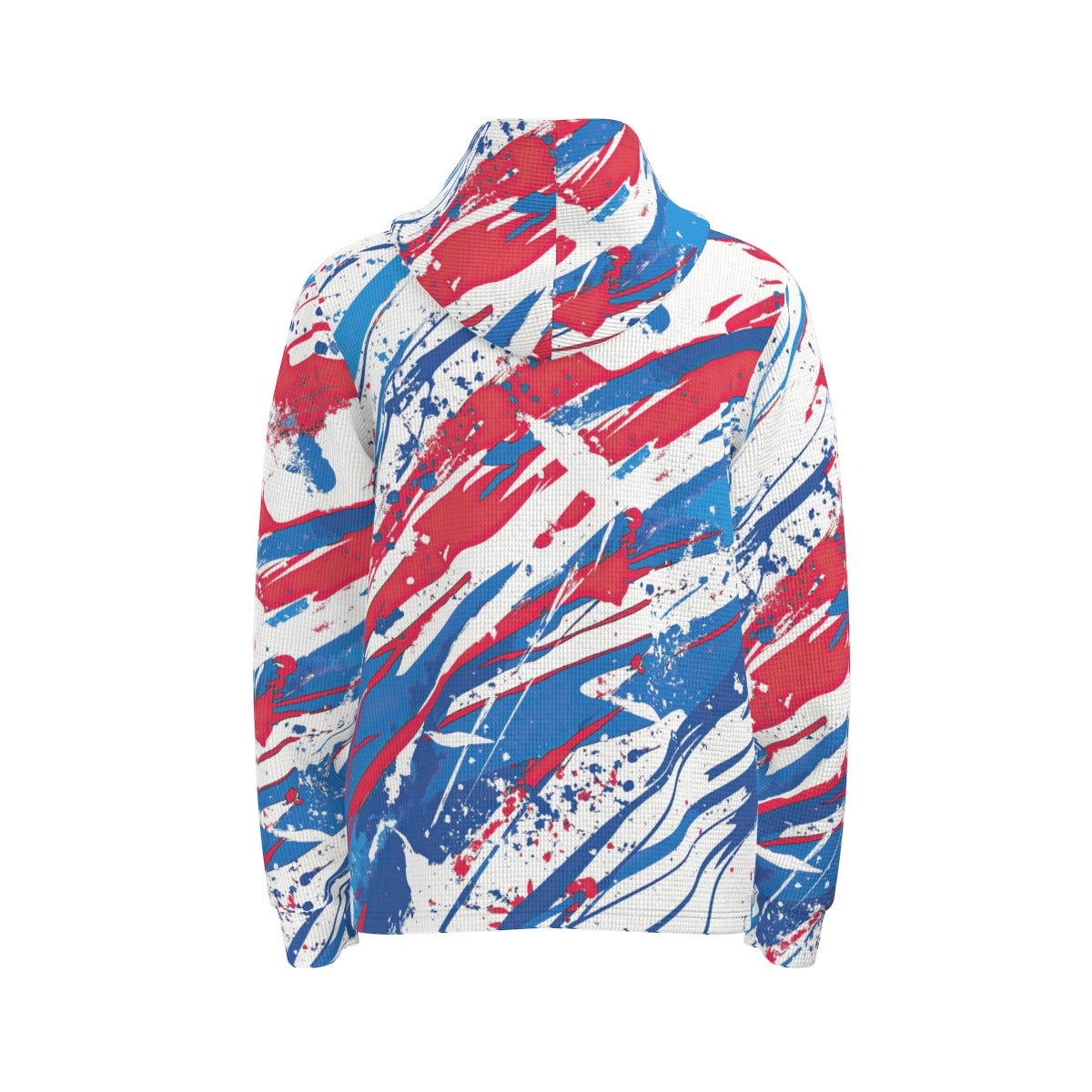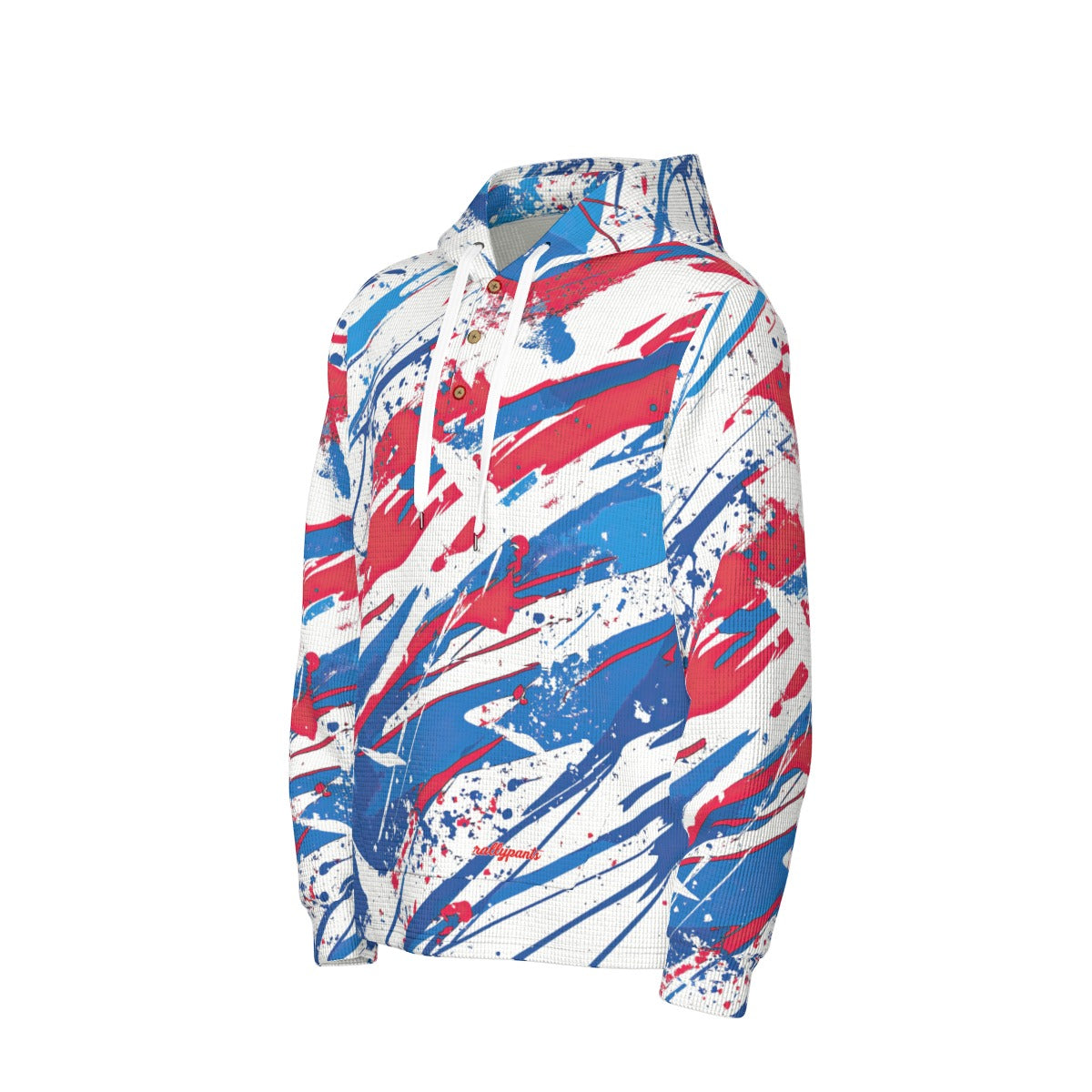 men’s thermal waffle half button pullover hoodie - buffalo blue/red/white