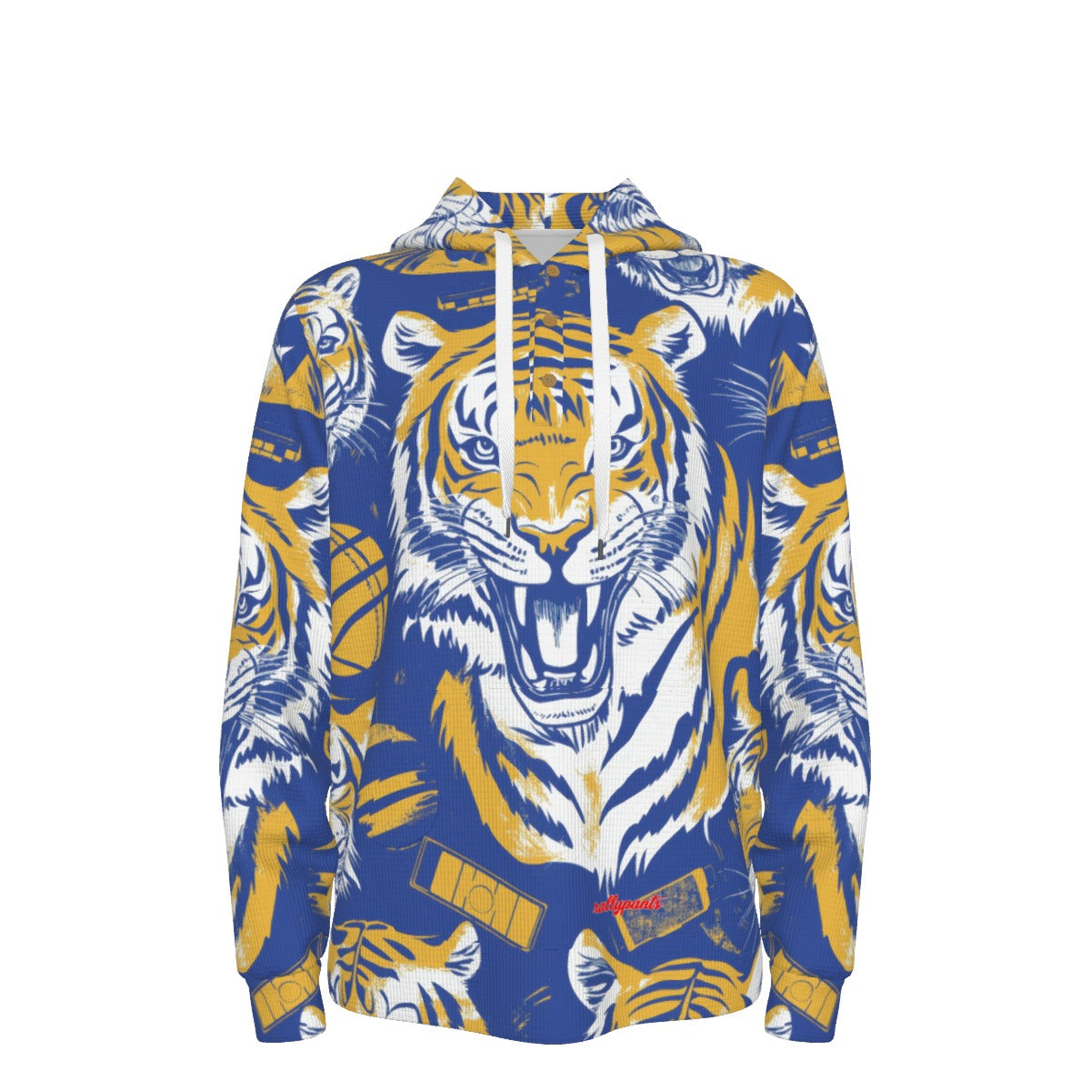 men’s thermal waffle half button pullover hoodie - northport blue/gold