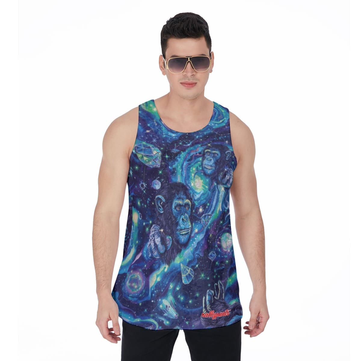 men’s velvet tank top – apes diamond blue/moon white rallyprint